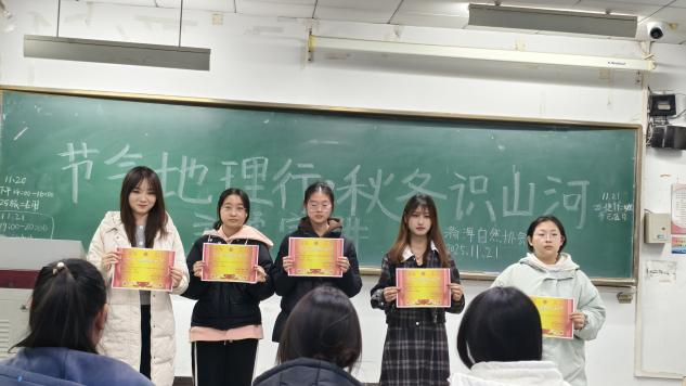 活动尾声的颁奖环节为整场活动画上圆满句号。本次宣讲活动设置多个奖项,颁奖现场,主持人逐一揭晓获奖名单,协会负责人为获奖者颁发奖状。台下掌声阵阵,充分展现了同学们对活动成果的认可和对地理知识的热爱。
