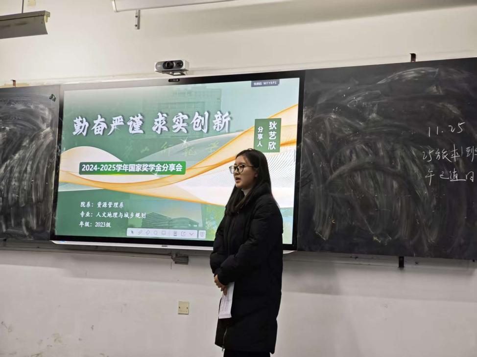 为发挥国家奖学金获得者的榜样引领作用,搭建学业交流平台、帮助同学们明确学习方向、提升科研与实践能力,11月25日晚,资源管理系2025年度国奖获奖分享会在北院文401教室如期举行。