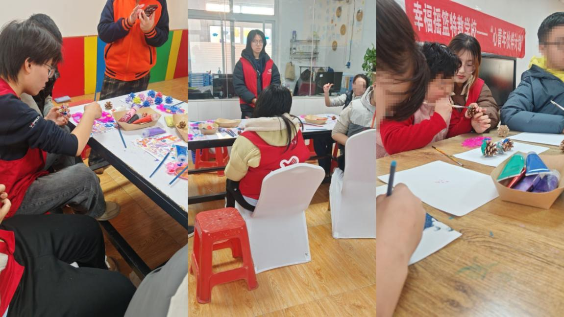 为传递社会温情,践行青年责任,12月2日,资源管理系青年志愿者协会10名志愿者前往幸福摇篮幼儿园,开展了主题为“松果彩绘,快乐陪伴”的志愿服务活动。志愿者们通过艺术创作的形式,陪伴园内的大龄心青年,共同度过了温馨而充实的时光。