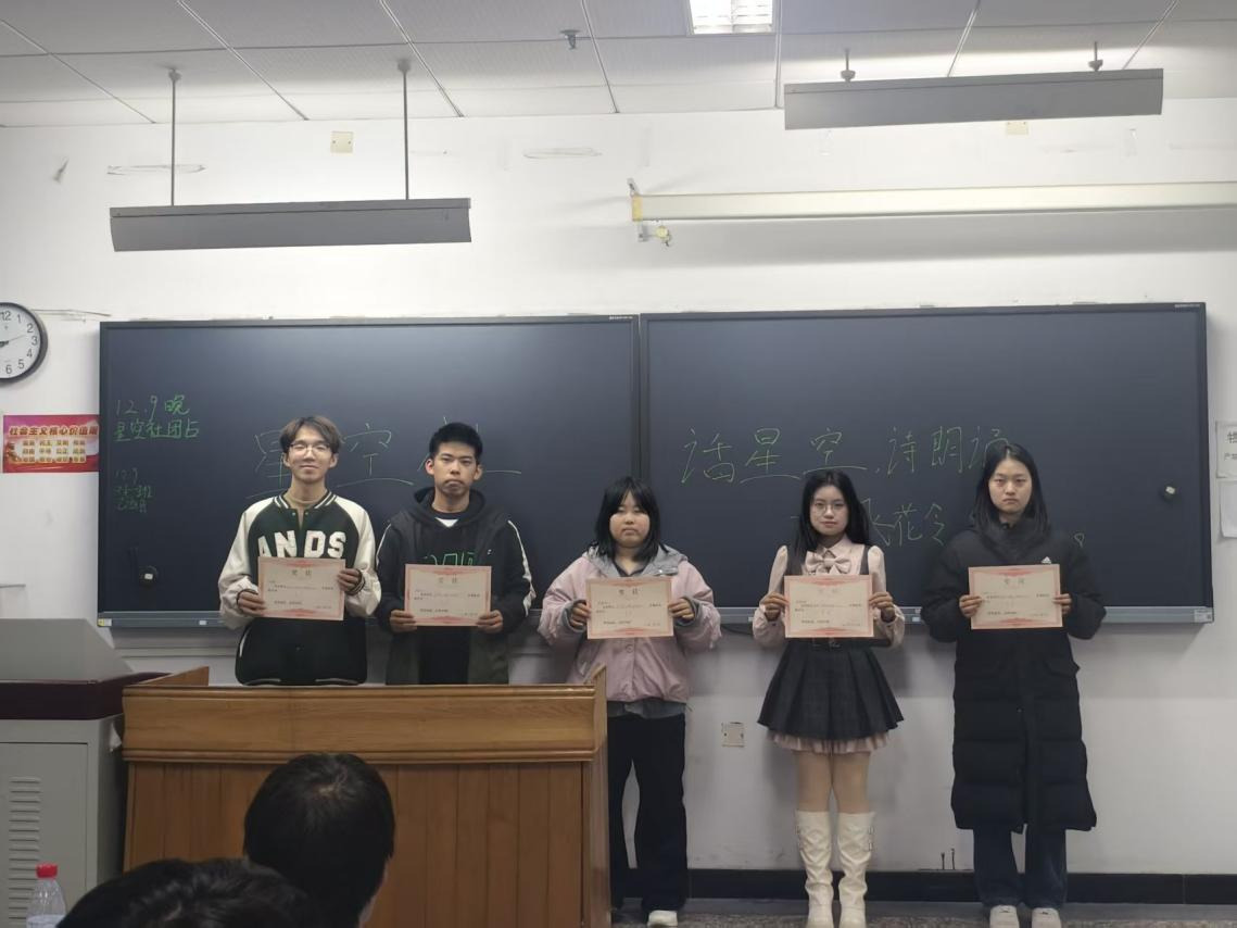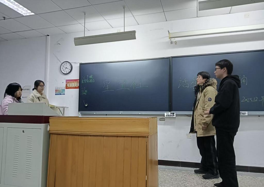 为进一步传承中华传统文化,将地理知识与飞花令趣味形式相结合,激发社员对地理与文学的双重热爱,丰富课余文化生活,星空天文爱好者协会于12月4日晚在北院文303教室成功举办话星空·诗朗诵·飞花令游戏。