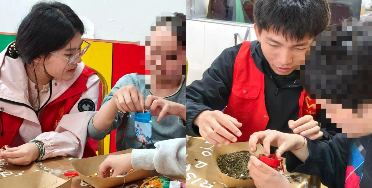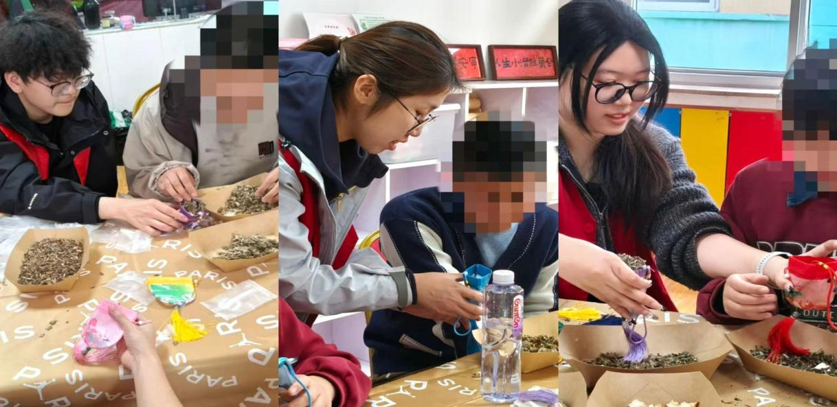 活动现场处处洋溢着温馨的氛围,志愿者们主动走近孩子,以温柔的姿态与他们建立信任,慢慢拉近彼此的距离。在手工制作环节,大家围坐在一起,携手制作香包、香囊。志愿者们耐心引导孩子们挑选布料、填充香料、缝制收口,手把手帮助他们完成每一个步骤。孩子们专注地动手创作,一个个小巧精致、香气四溢的香囊在手中诞生,每一件作品都承载着童真与美好,也让孩子们在动手过程中收获了成就感与乐趣,感受手工创作的独特魅力。